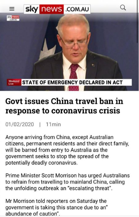 澳洲从2月1日起宣布禁止非澳洲籍或永居人员入境,已有近万名中国人被拒绝入境。