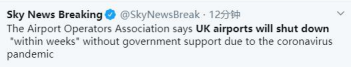 英国天空新闻社报道称英国即将在几周内关闭所有机场。入境更为艰难